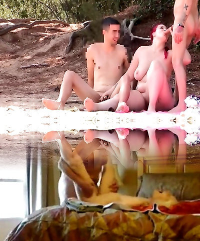 Beach Busty Slut Fucks Two Men at Once While Her Horny Hubby Watches!