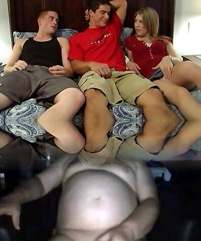 Horny Bi College Studs Share Their Cocks with Busty Titties!