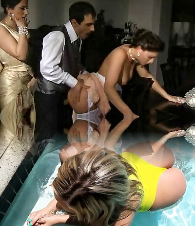Glamour Threesome Turns Into Oiled Foursome