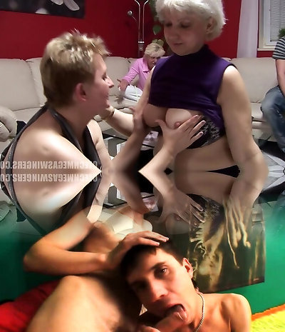 Pussy-Licking Mature Women Brutally Fuck Young Guys in Orgy Porn
