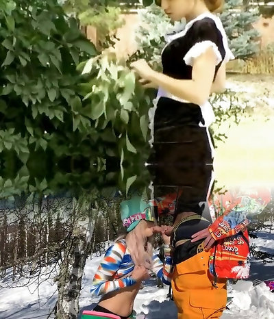 Brunette Maid Teases Then Takes Punishment