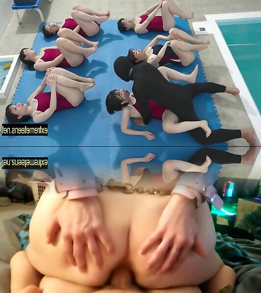 Asian teenage Shizuka burns the calories with a gonzo exercise