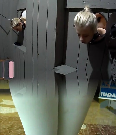 Blonde bombshell sucks cock at gloryhole.