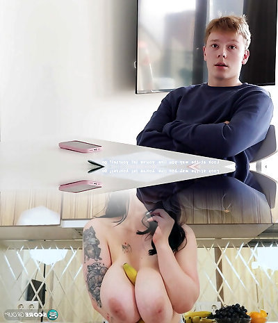 Horny Son Fucks His Mature Mom in the Kitchen While She Sucks on a Dildo!