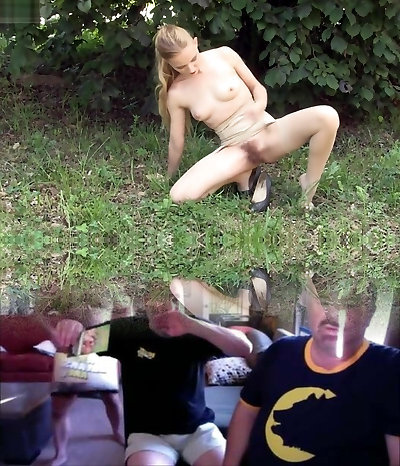 Public pissing slut masturbates outdoors