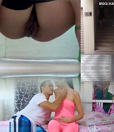 Milf Busty Blonde Fucking Her Son's Cock While Taking a Leak on the Toilet