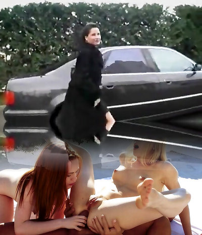 Fuckin' Horny Transsexual Teases Cute Girl with Massive Titties Before Getting Their Heads Together!